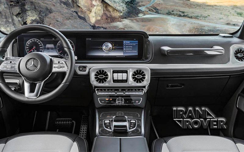 درون کابین G کلاس استفاده از چوب و چرم فوقالعاده با کیفیتی به چشم میخورد. از دیگر مشخصههای جالب این کابین وجود دو نمایشگر ۱۲.۳ اینچی است که یکی از آنها نقش نشاندهندههای پشت فرمان را ایفا میکند و دیگری نیز در نقش سیستم مالتی مدیا ظاهر میشود.